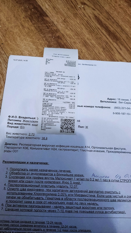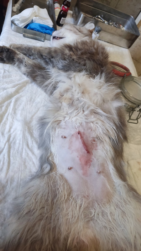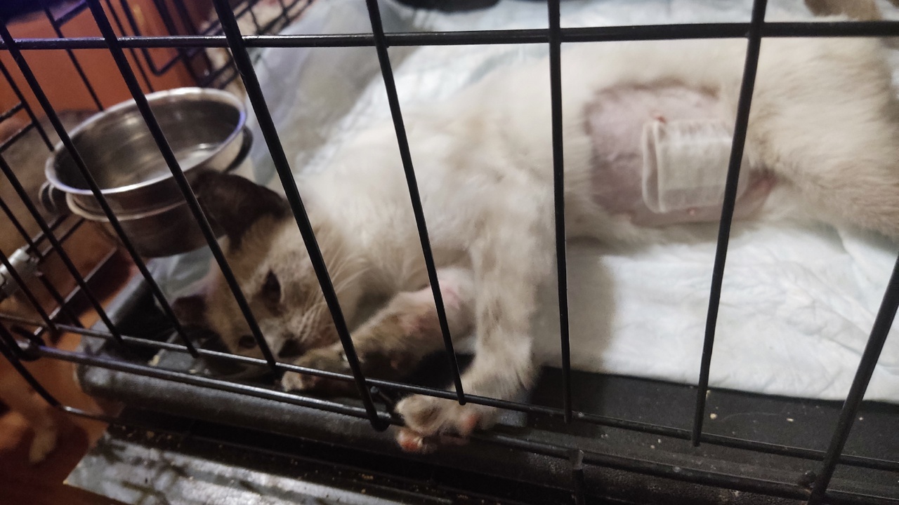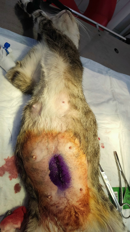 Стерилизована новая кошечка 10,07,25г. Операция была срочная, так как у кошки случился выкидыш мертвыми котятами.